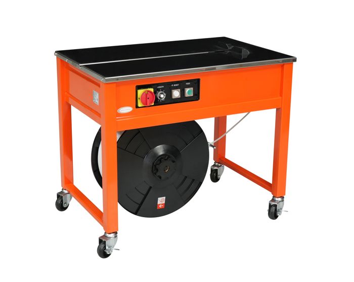 - Simple Operation.ÊThe free end of the strap appears on the table which can be placed around this article by hand for strapping. No training required.